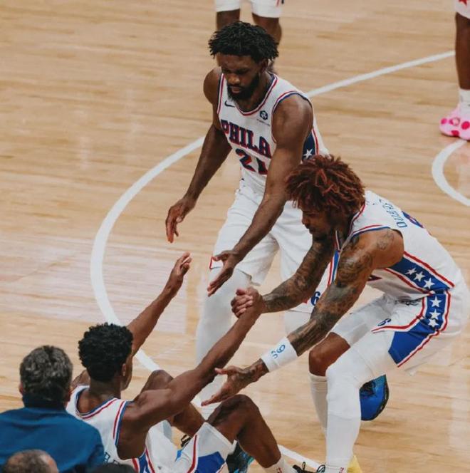 76人似乎也真的是顾不上恩比德和乔治了,与其等待两个玻璃人保持健康,不如利用手头的年轻人跑起来。